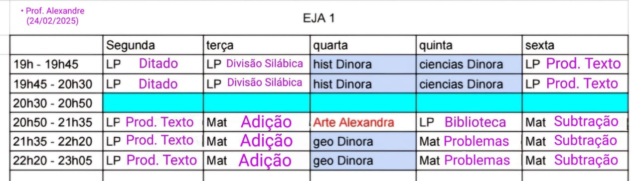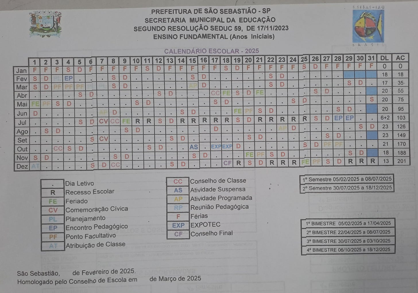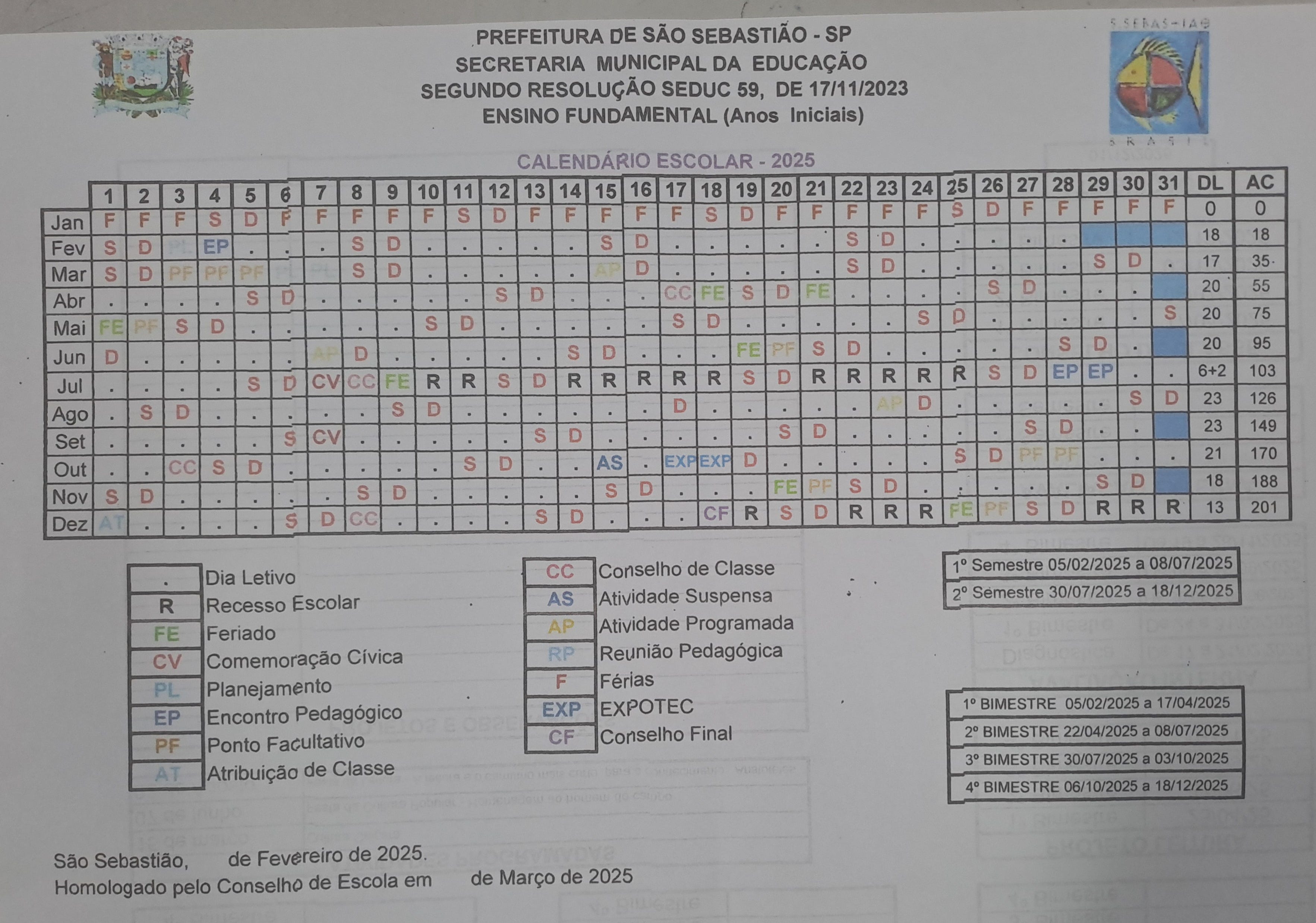 AgendasEventos e atividades únicas ou regulares.Calendário Escolar 2025Cronograma Semanal (disciplinas)Cronograma Semanal (atividades)
